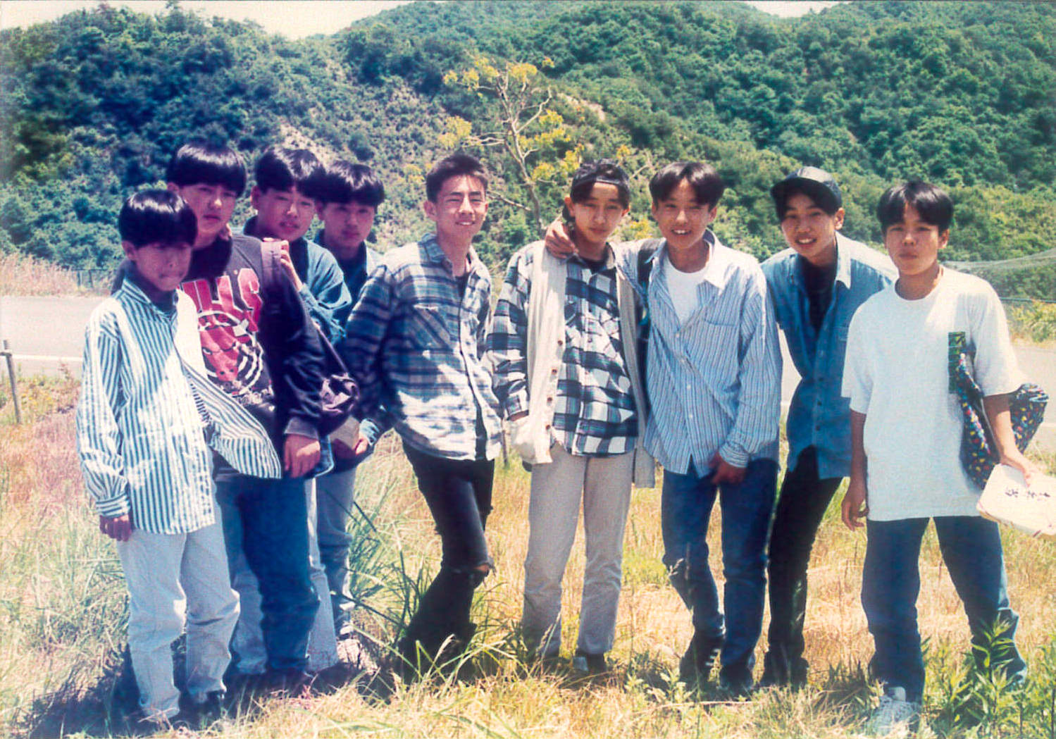 真ん中で帽子をかぶっているのが、筆者。時代なのか……、ダサい! その左が今回の主人公、ユキ。左端がカド。
