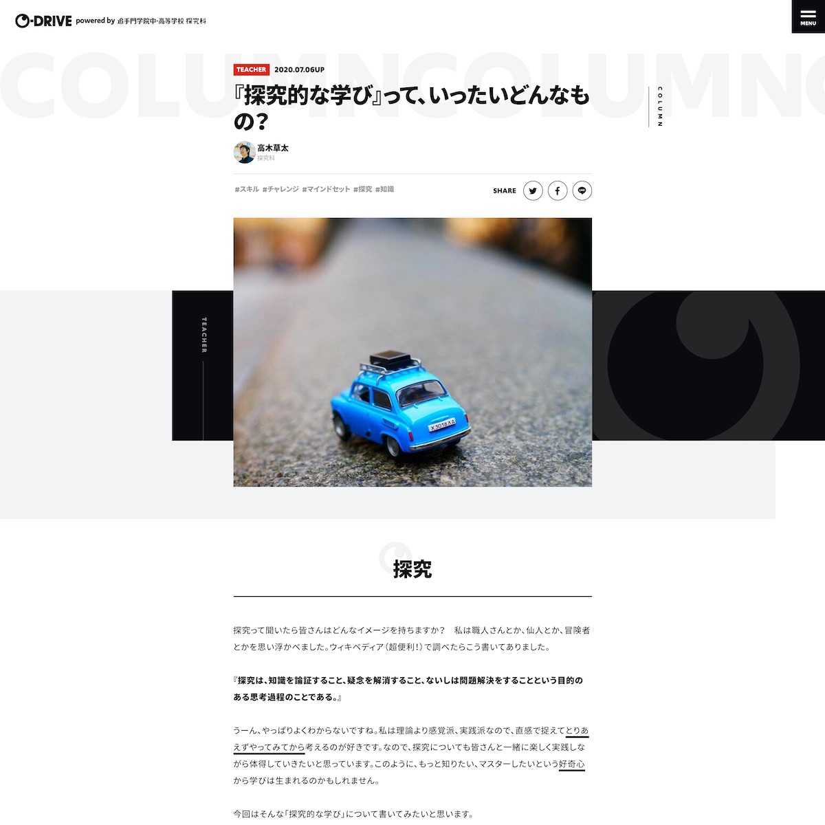 これすげ。O-DRIVE l 追手門学院中・高等学校「探究科」が、教育内容や子どもたちの成長プロセスを発信。 https://t.co/V5iDGyclfw