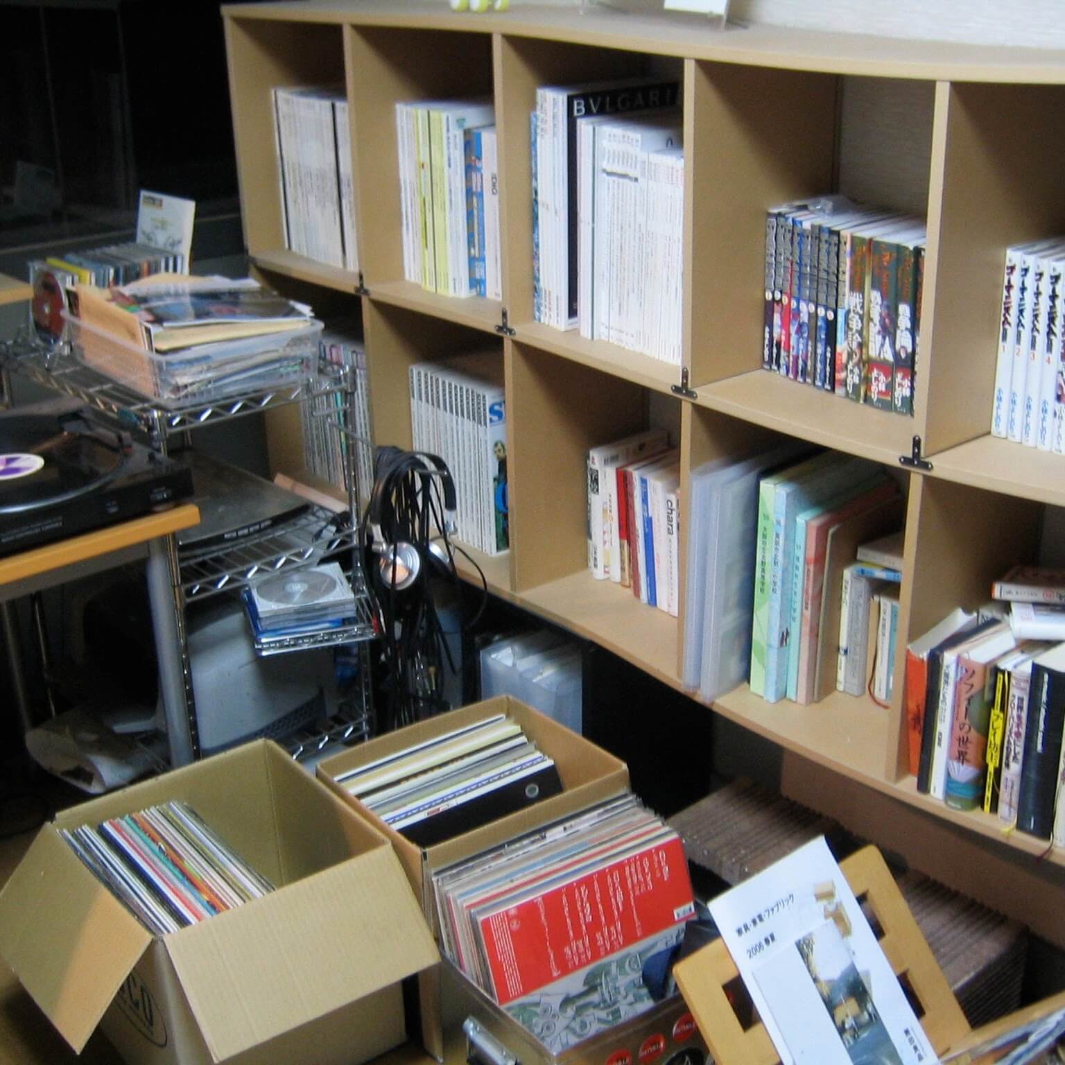 実家の自分の部屋の写真がありました。雑誌とレコードでぐちゃぐちゃ。
