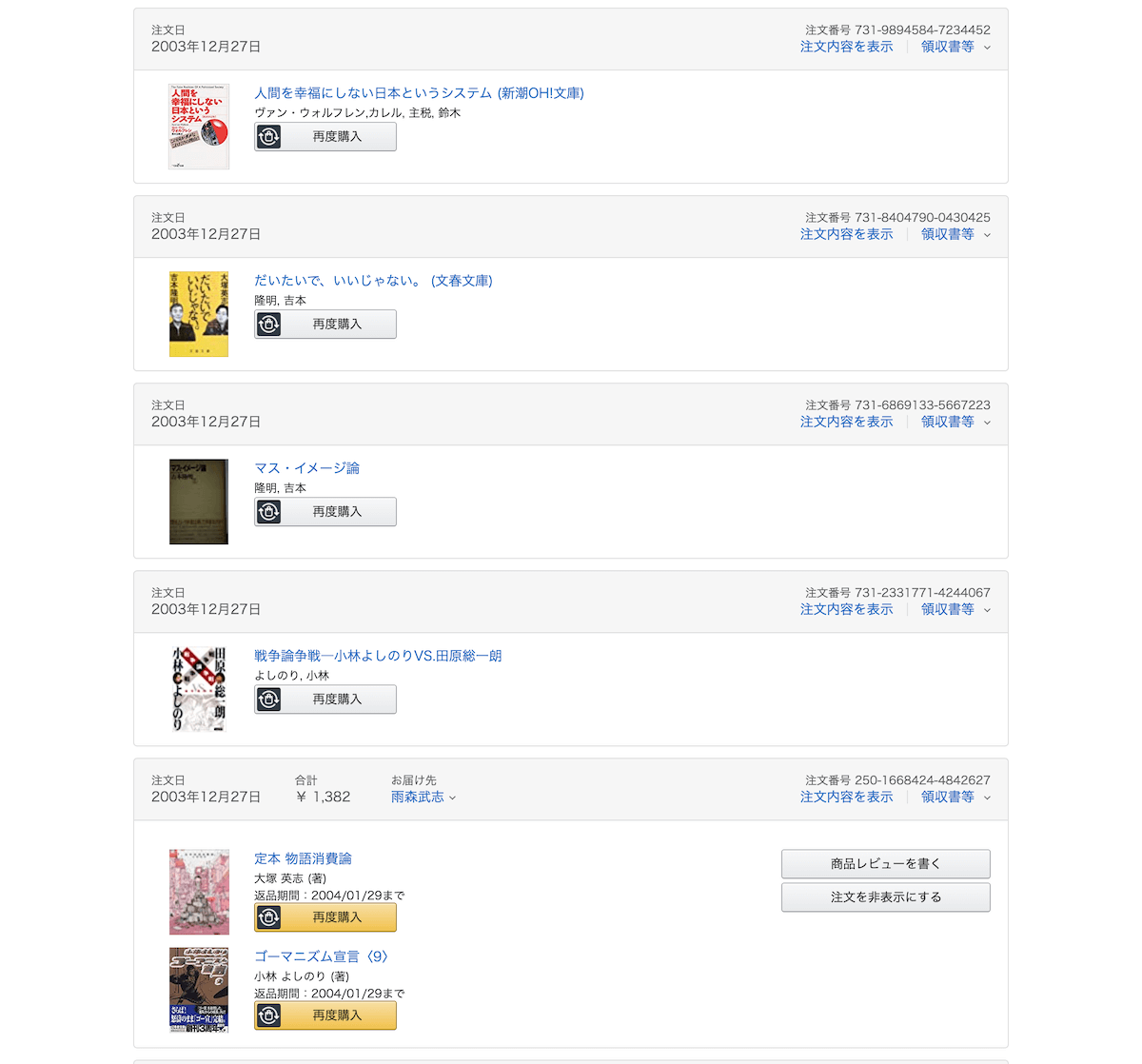 例えば2003年12月27日に購入したのがこれ。無理してるな〜。