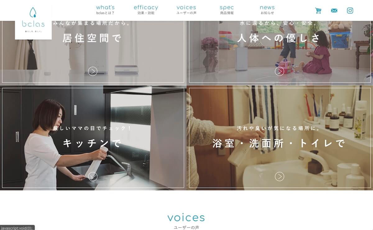 続いては先ほど紹介した東葛テクノ株式会社様がプロデュースするbclas(ビクラス)という商品のブランドサイト。
