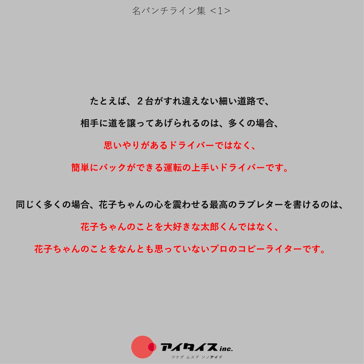 これはお仕事におけるテクニック論ではなく、もうちょっと上位概念とも言える「お仕事論」みたいな話の中で出てきたパンチライン。一昨年に新卒採用の面接を行っていて、その中で学生に伝えたことの話がされていました。