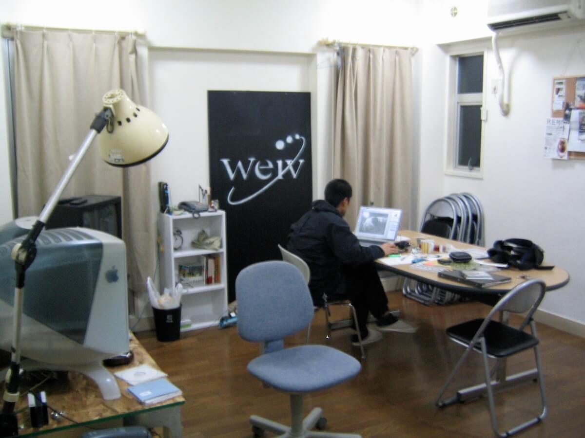 当時、上新庄にあった事務所。後ろ姿は後述するデザイナーの松尾くん。いつもふたりで泊まり込みで作業をしたものです