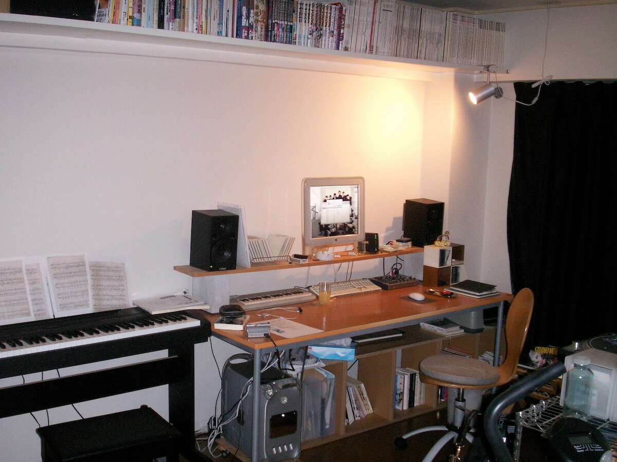 大阪で一人暮らしをしていた時の部屋の写真。実家を出る時にだいぶ捨てましたが、それでも天井下の収納に雑誌がずらっと並んでいるのがわかります。