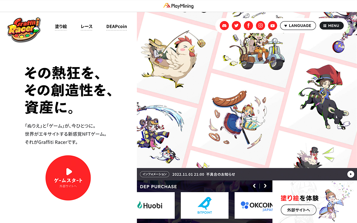 Web3の世界で楽しめるゲームの公式サイトになります。残念ながら現在サービスは停止してしまったようですが、まだ閲覧は可能。ただし我々が納品した時からから、デザインは少し変わっているようです
