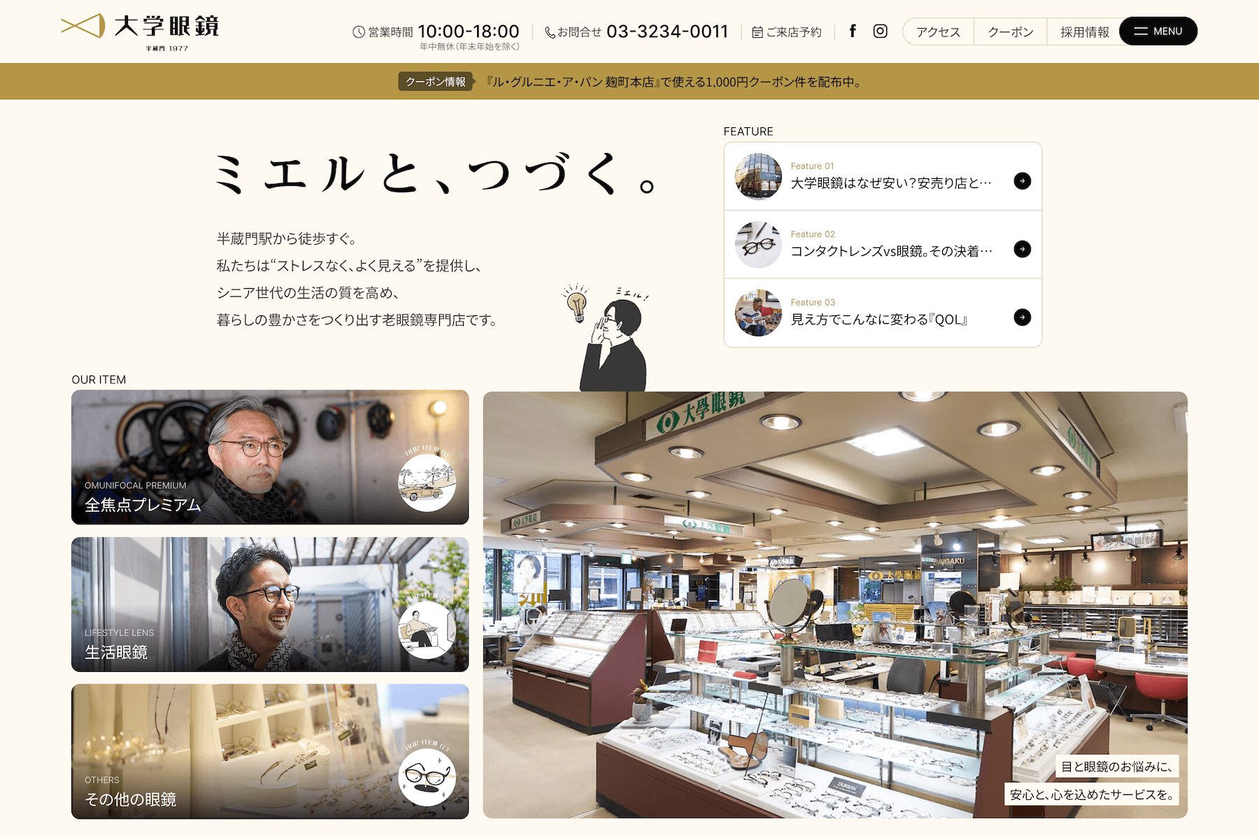 こちらも冒頭で紹介したものになります。このサイトでイラストを用いた理由は、そもそもメイン商材である「眼鏡のレンズ」は、どれも無色透明のものであり、写真では商品ごとの差異がまったくわからないという問題があったからです。
