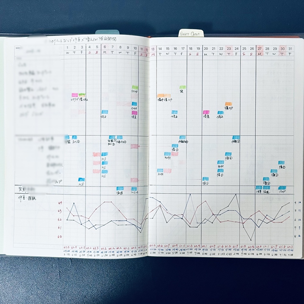 ラコニック時代は体重と睡眠時間もガントチャートで管理していました。
