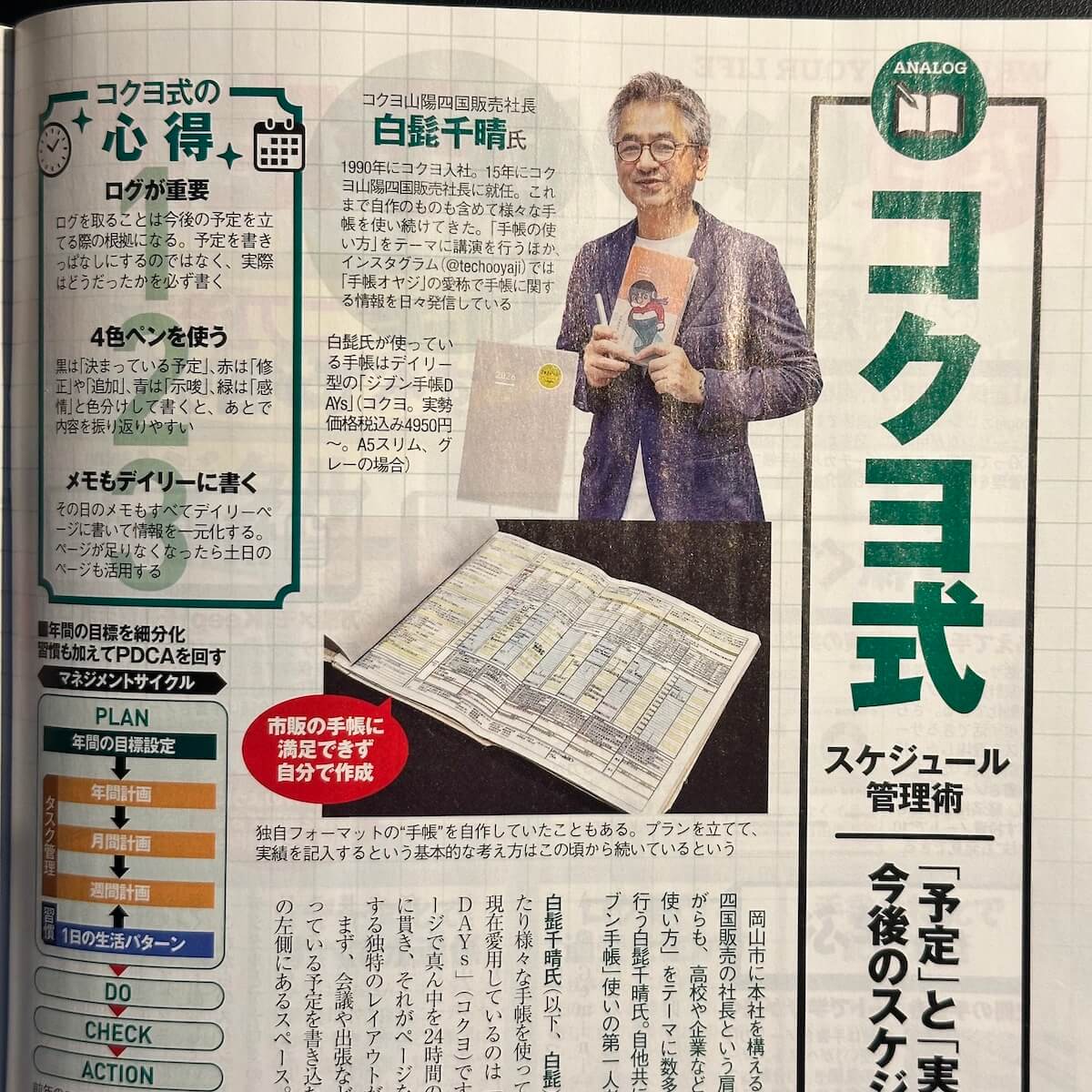 もともとは僕と同じように市販の手帳では満足できず、自作の手帳を使っていたと語る白髭さん。僕にとっては生涯の師を得たような感覚です。