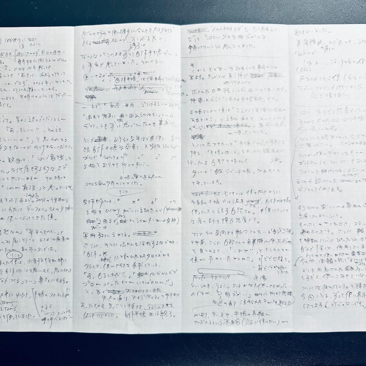 ちなみに割と驚かれるのですが、毎月10〜20本近く書いている仕事の原稿も、ほとんどが手書き。出来上がった後、お客さんに納品するために、最後にササ〜っとワードなどに書くカタチで進めています。