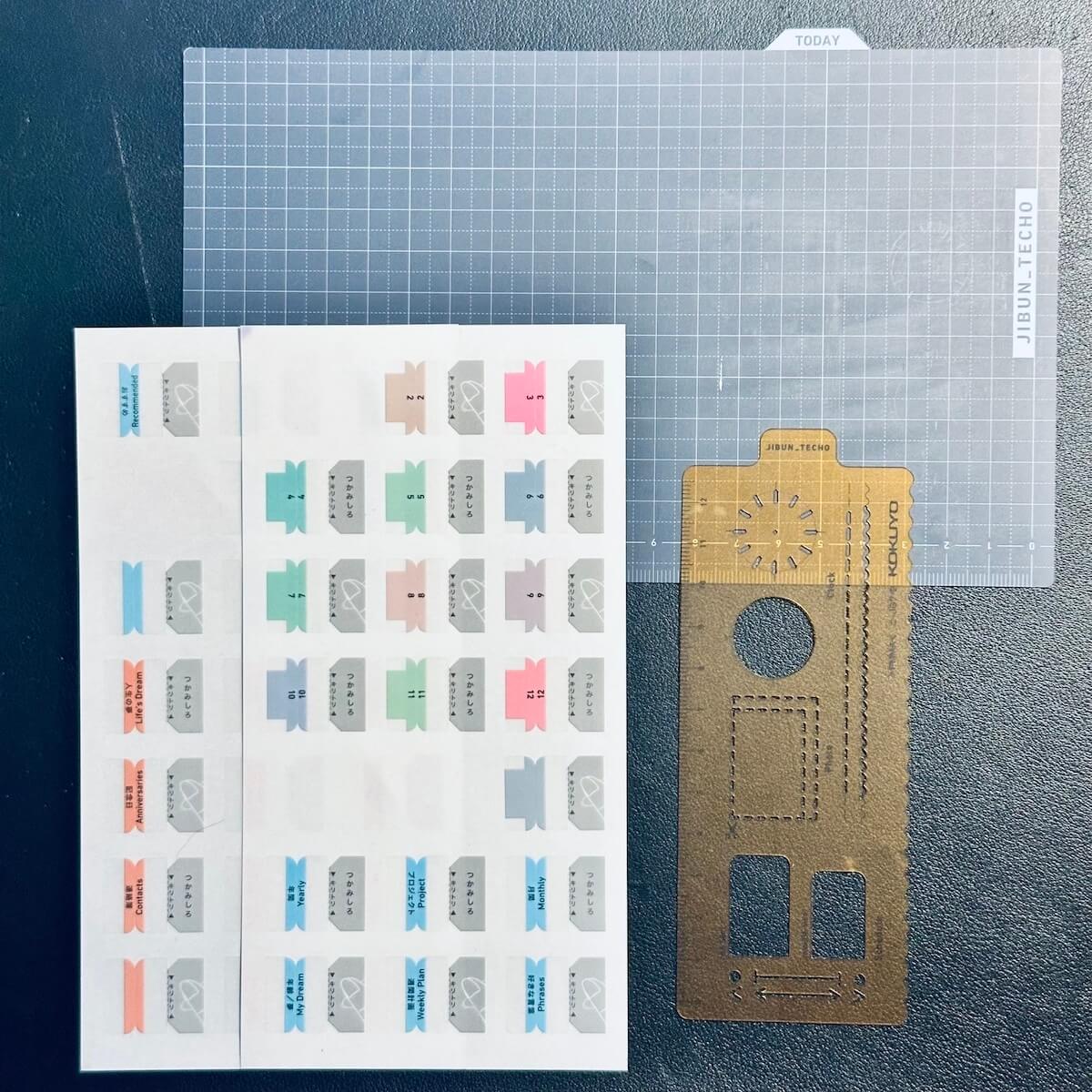 定規のようなテンプレートやインデックスシール、下敷きなども速攻でポチ。それに加えて、ウィークリーの1時間の天地幅にぴったりのロールふせんも探し出し、併用しています。
