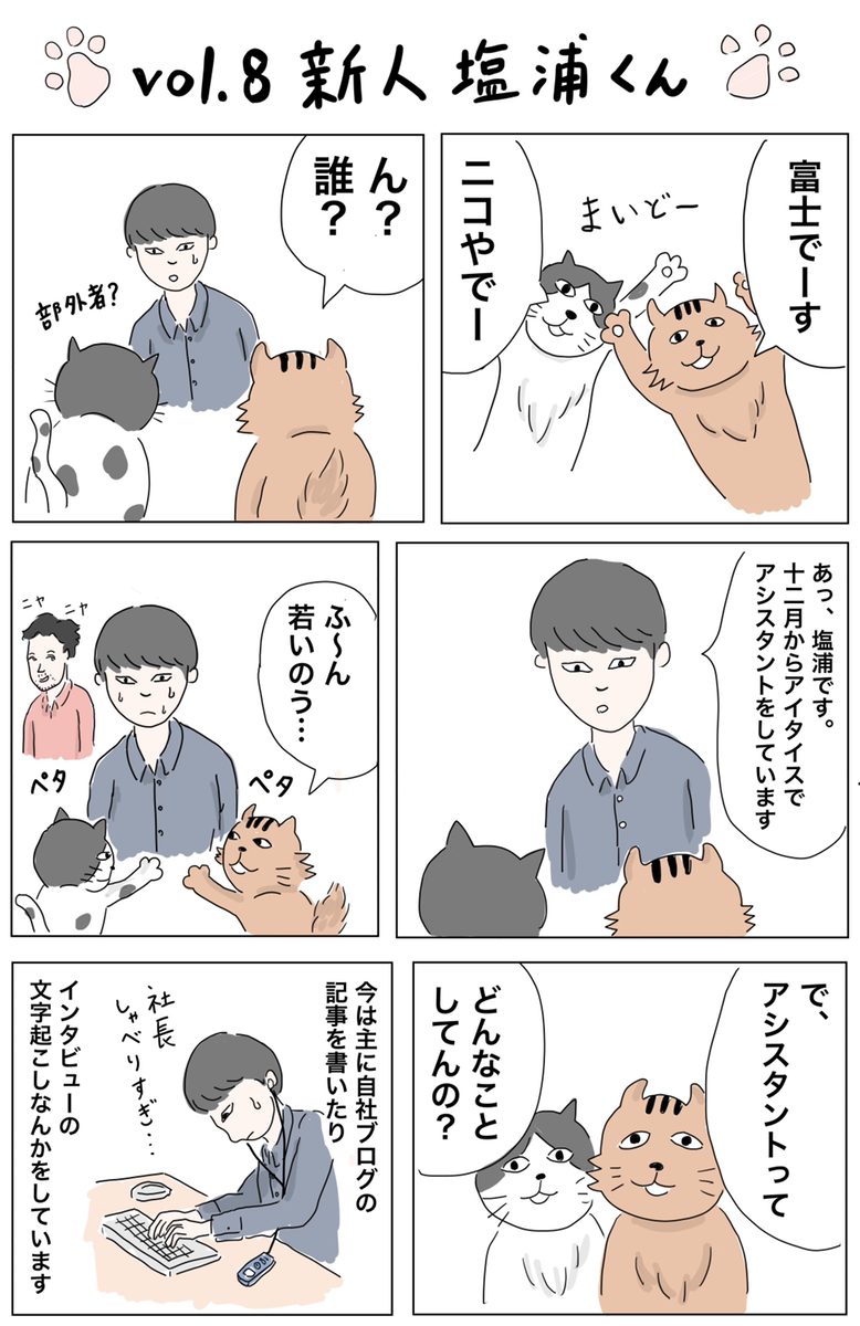 アイタイス社長、雨森の愛猫「富士」と「ニコ」がアイタイスに押しかけて好き勝手に情報をお届けするマンガコラム。
