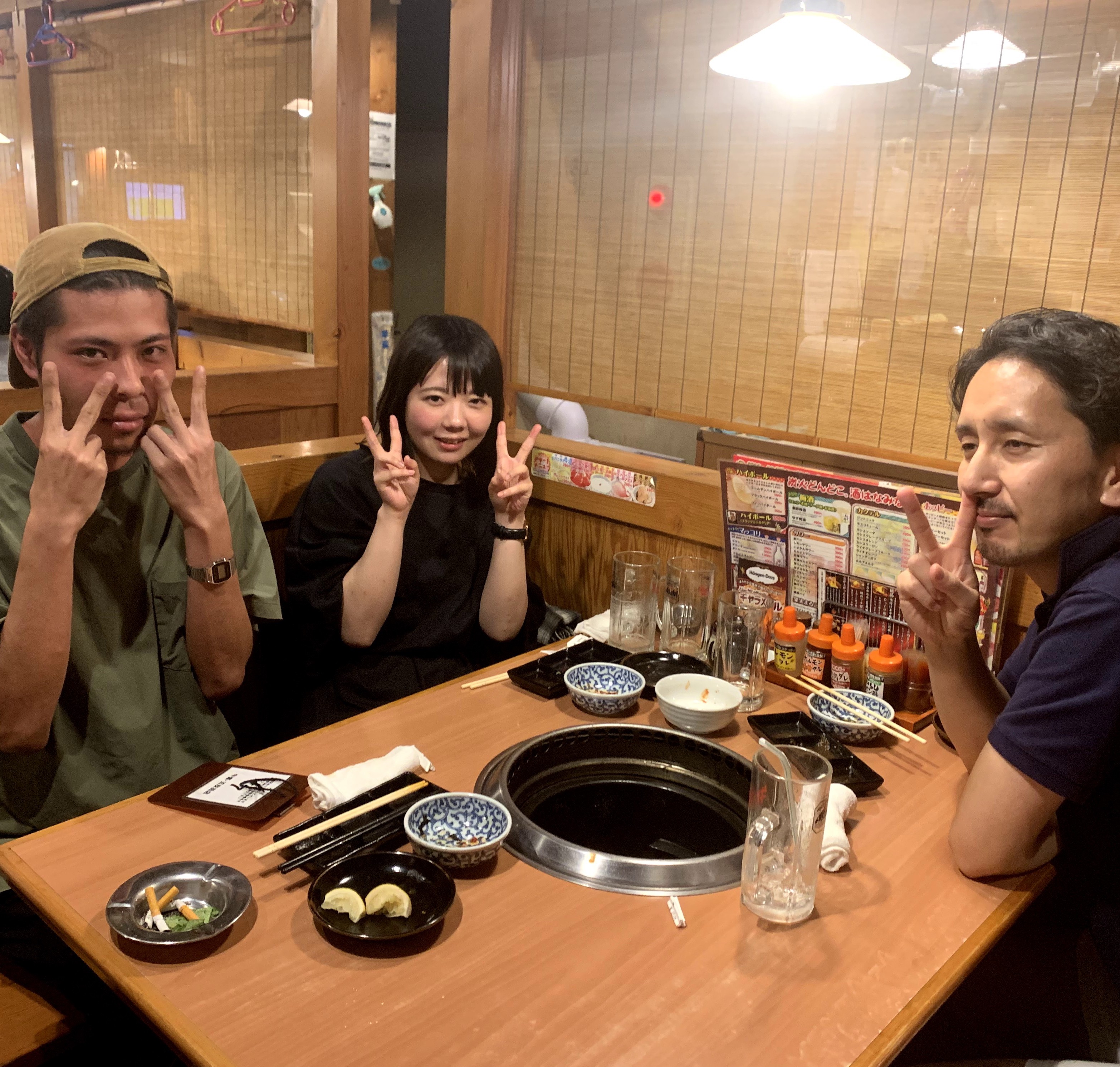 3人で撮っている写真は超レア。西村さんはお酒を呑んで頬がほんのり赤いですね。社長は……あえて触れません。
