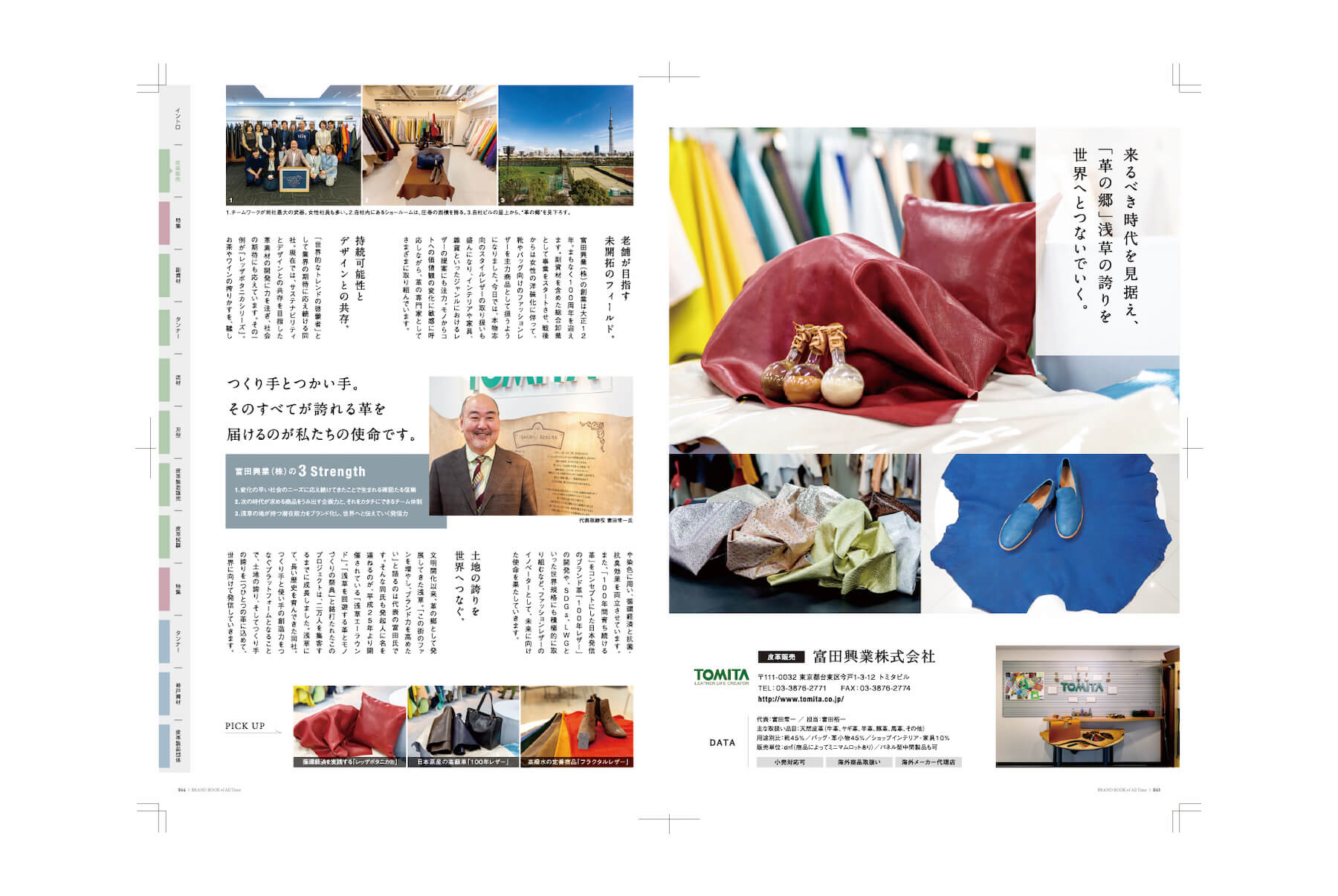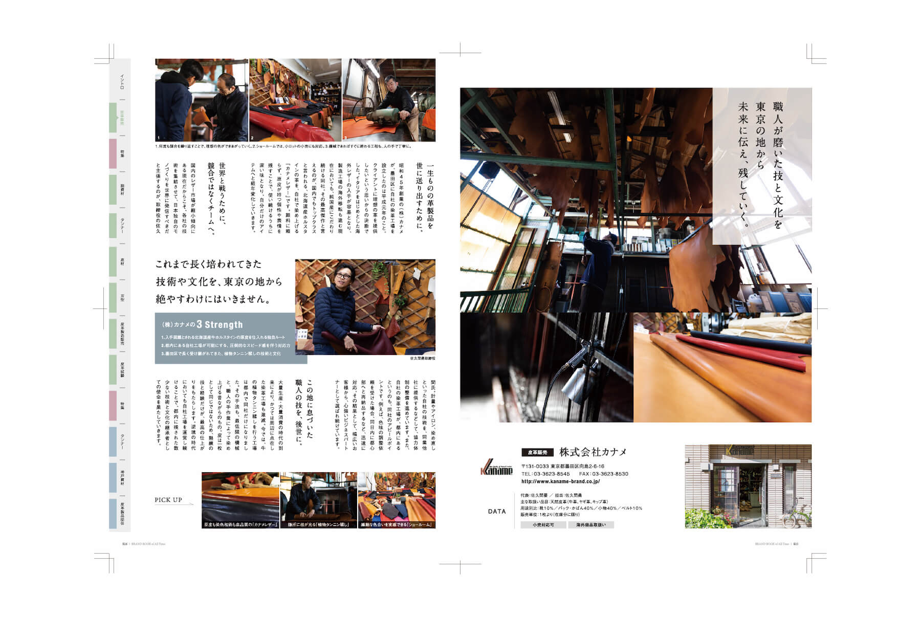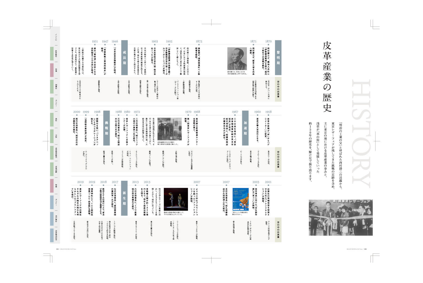革や関連資材を扱う国内最大規模の展示会『東京レザーフェア』の50周年と100回を記念して制作されたアニバーサリーブック。約半年をかけて、全国50以上の加盟企業すべてに取材・撮影を行い、それぞれの強みや独自性をあぶり出した。また、50年間の歴史を書き留め、未来へとつないでいくアーカイブとしてのコンテンツも充実しており、関係者やレザーファンの好評を博した。