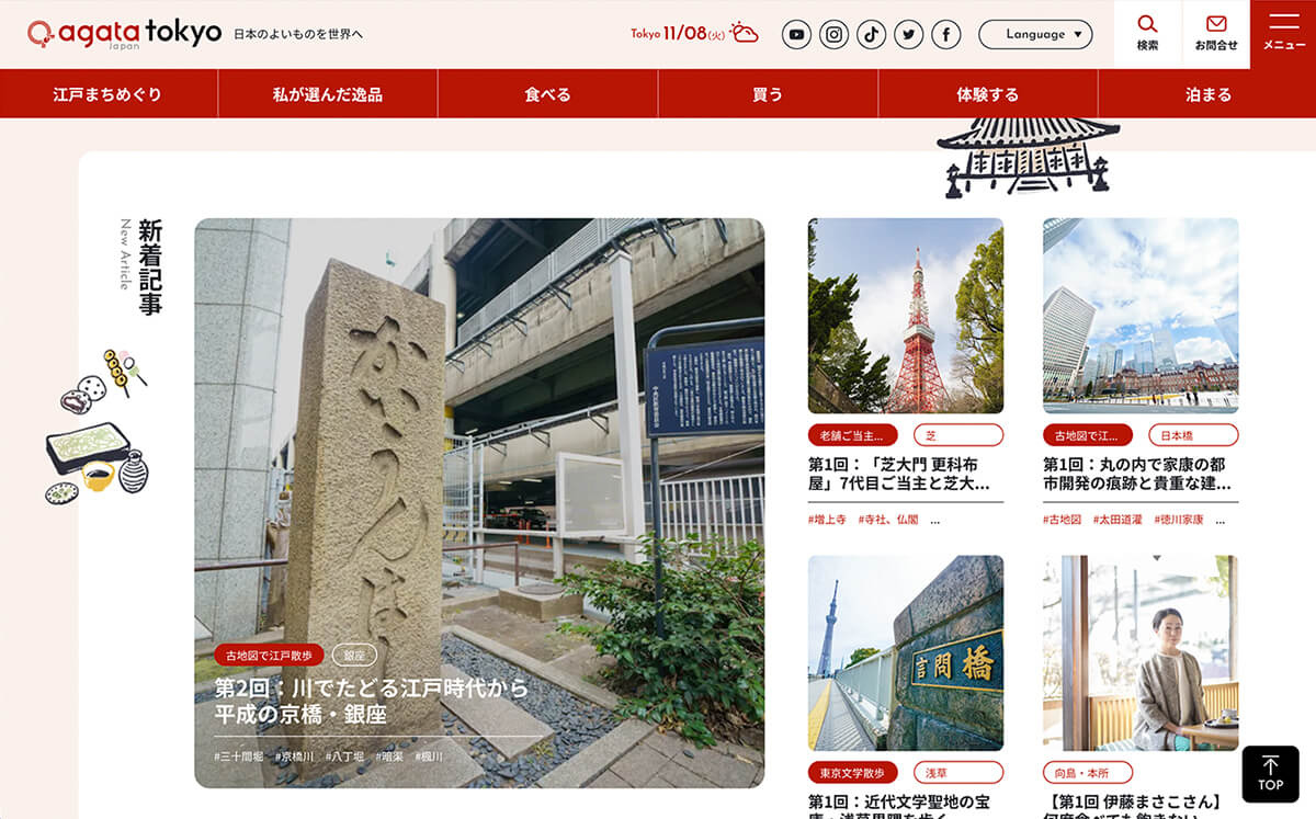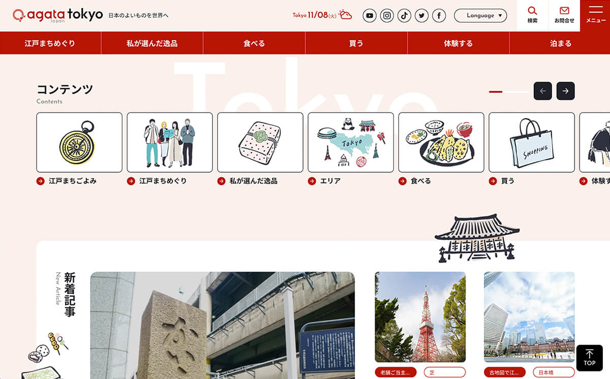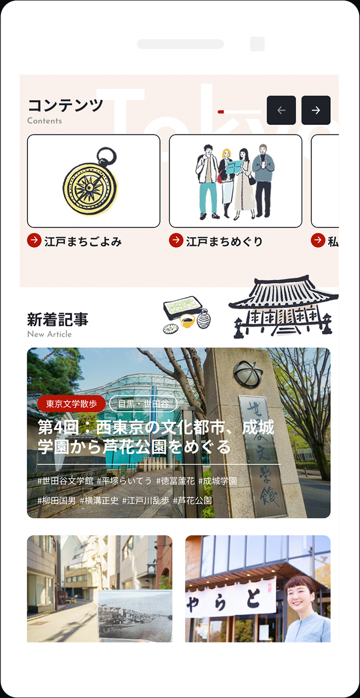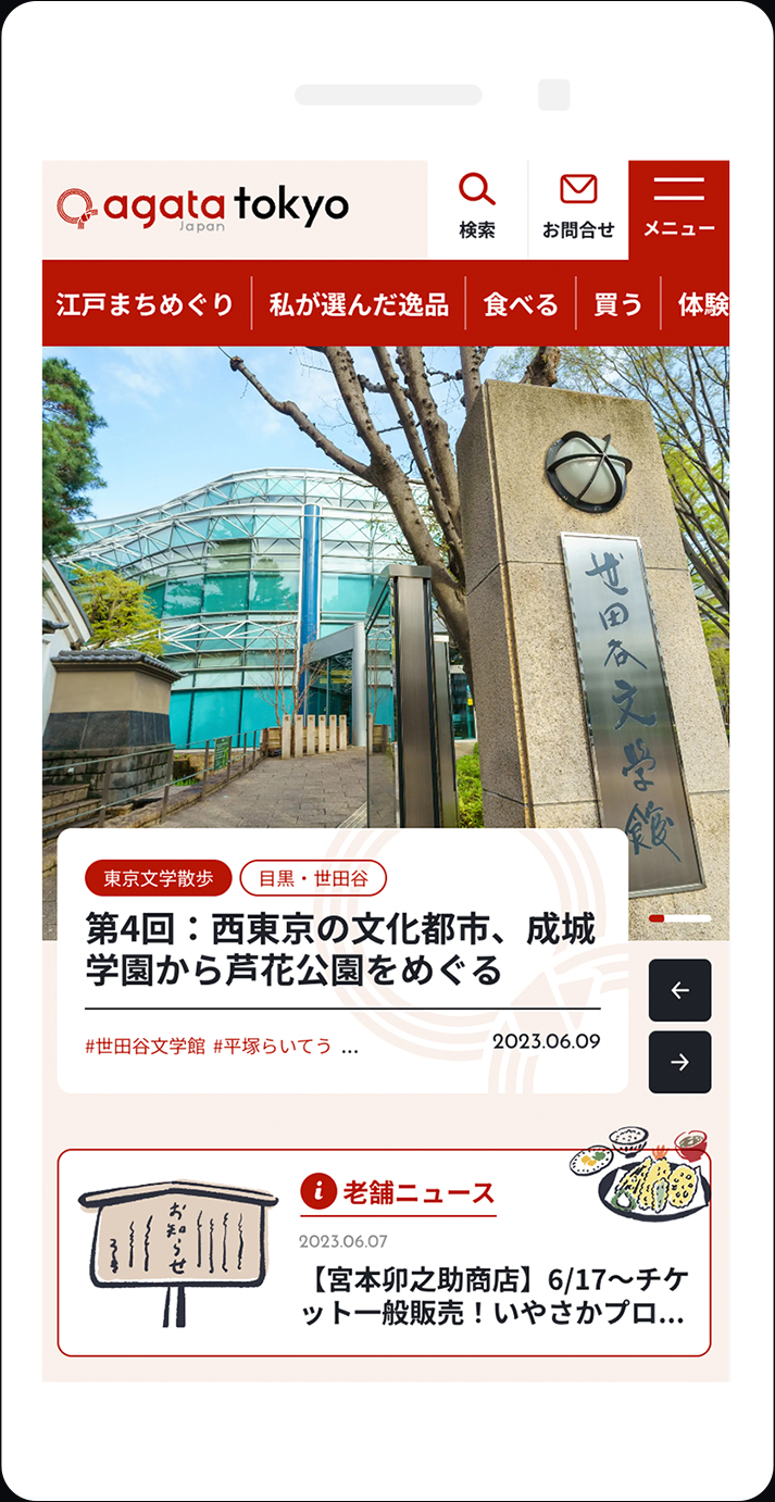 “品よくカジュアルに”ふだん使いもできる東京の老舗ガイドとして、東京と老舗の伝統と文化が育んできた“ホンモノ”の魅力と出合える場所をメディア。進行管理役として、プロジェクトに携わる多くの制作陣をまとめながら、設計とデザイン、コーディングまでを担当しました。この後、京都版がリーリスされ、さらには全国版へと構想は続いております。